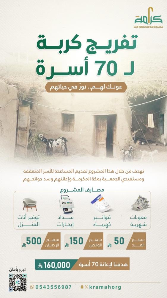 نهدف من خلال هذا المشروع تقديم المساعدة للأسر المتعففة ومستفيدي الجمعية بمكة المكرمة وإعانتهم وسد حوائجهم 💌